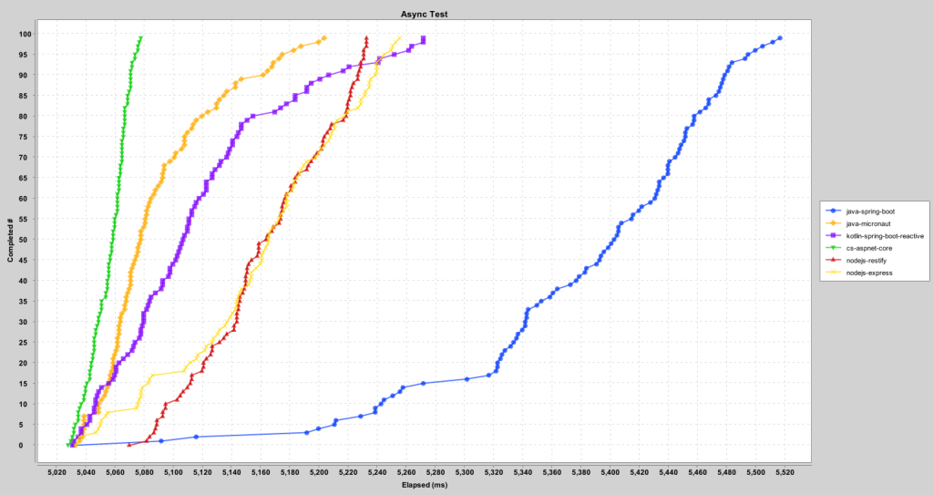 - Spring Boot Webflux and Micronaut works better than NodeJS. That's a surprise.