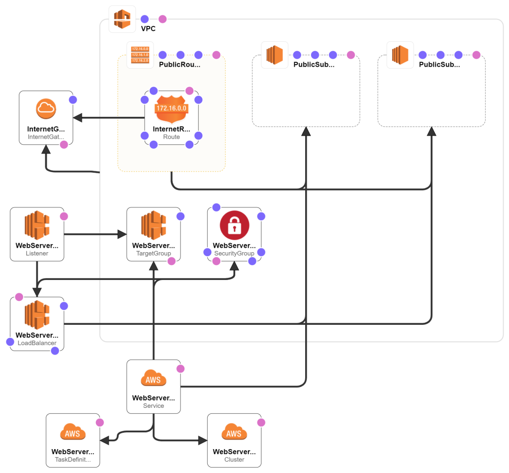 We need to setup to container. We will use AWS Fargate service. It will handle all the Docker services for us. We just need to setup the container task definition. Add these resources: